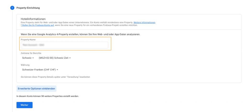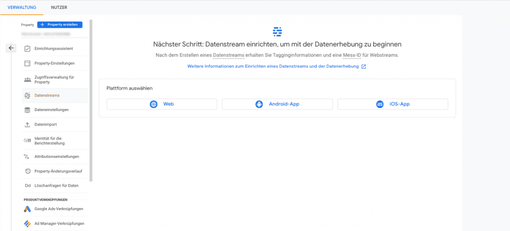 - Schritt 1: Erstellen Sie in Ihrem aktuellen GA-Konto eine neue Google Analytics 4-Property (Bild 1).