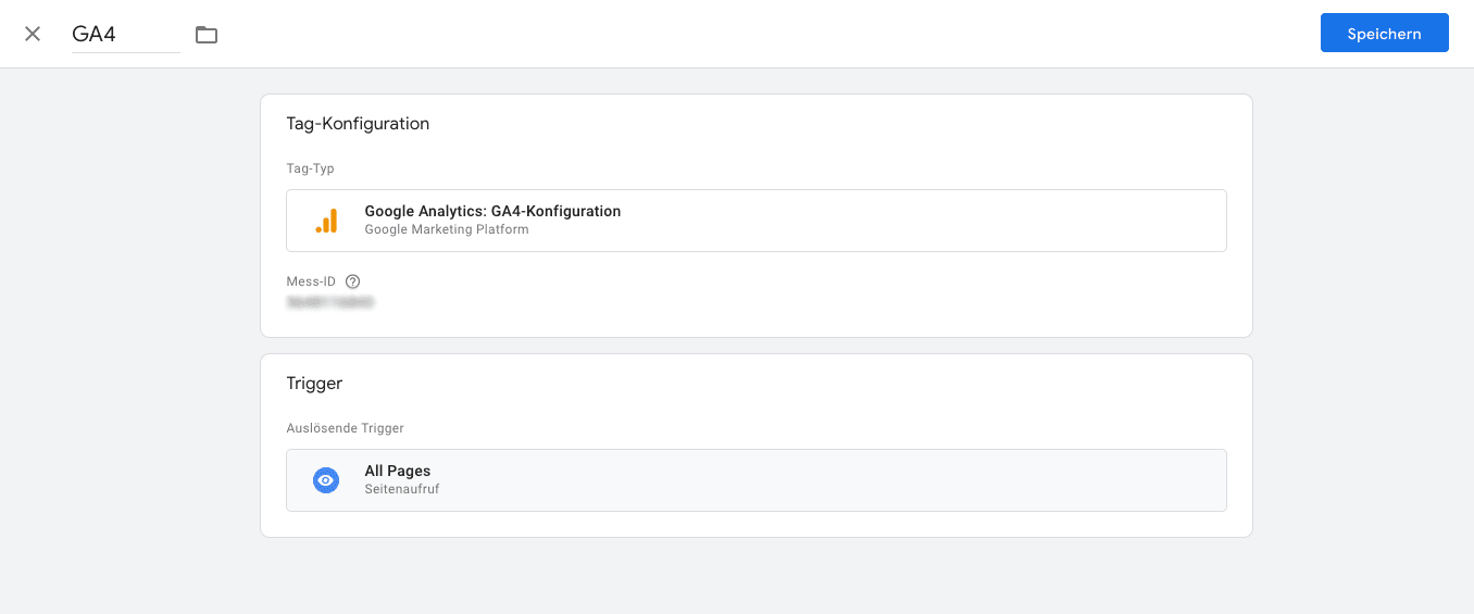 Schritt 1: Um Ihren Tracking-Code mit GTM zu installieren, benötigen Sie Ihre neue GA4-Messungs-ID